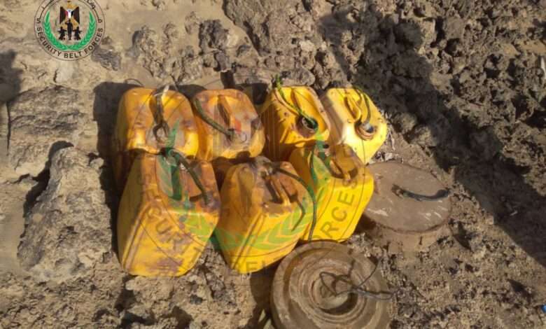 قوات الحزام الأمني تعثر على عبوتين ناسفتين عقب عملية تمشيط بشقرة