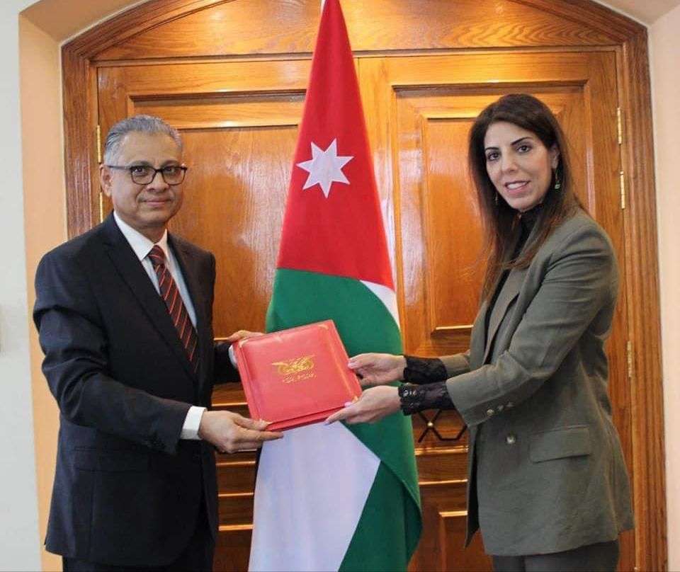 سلم الدكتور جلال فقيرة، اليوم، امين عام وزارة الخارجية وشؤون المغتربين للشؤون الدبلوماسية والمغتربين الاردنية السفيرة لينا الحديد، نسخة من أوراق اعتماده سفيراً فوق العادة ومفوضاً لليمن لدى المملكة الأردنية الهاشمية الشقيقة.