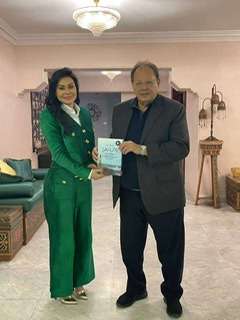 وتابعت الصبيحي:" كما تطرّق الحديث للظروف القاسية التي تمر بها بلادنا ، ولكنه أبدى تفاؤلا كبيرا بمستقبل أفضل لليمن ليعود سعيداً، وقد تكرّم مشكوراً بإهدائي نسخة من كتابه ذاكرة وطن.