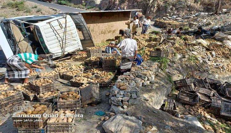 توفي شخصا بانقلاب شاحنة لنقل البضائع في طريق القبيطة بمحافظة لحج.