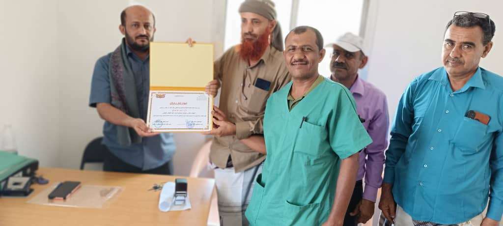 تكريم أحد العاملين البارزين في مستشفى ردفان العام بمناسبة يوم العمال العالمي