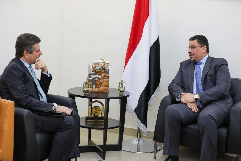 التقى وزير الخارجية وشؤون المغتربين الدكتور أحمد عوض بن مبارك ، اليوم، سفير الولايات المتحدة لدى بلادنا ستيفن هاريس فاجن، لبحث سبل تعزيز العلاقات الثنائية بين البلدين الصديقين، واستعراض مستجدات الأوضاع والجهود المبذولة لإحلال السلام في اليمن.