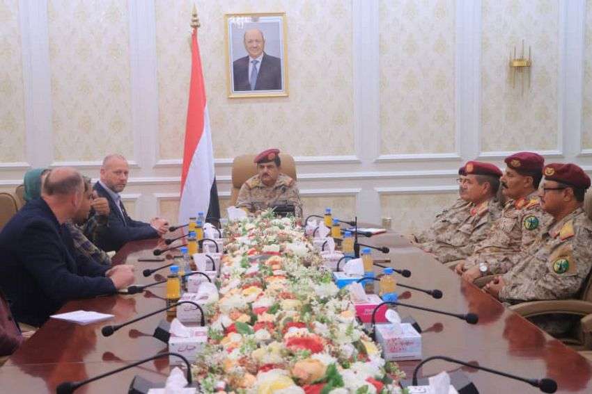 بحث وزير الدفاع الفريق الركن محسن الداعري، اليوم في العاصمة المؤقتة عدن، مع وفد عسكري بريطاني، اوضاع خفر السواحل والموانئ في عدن.