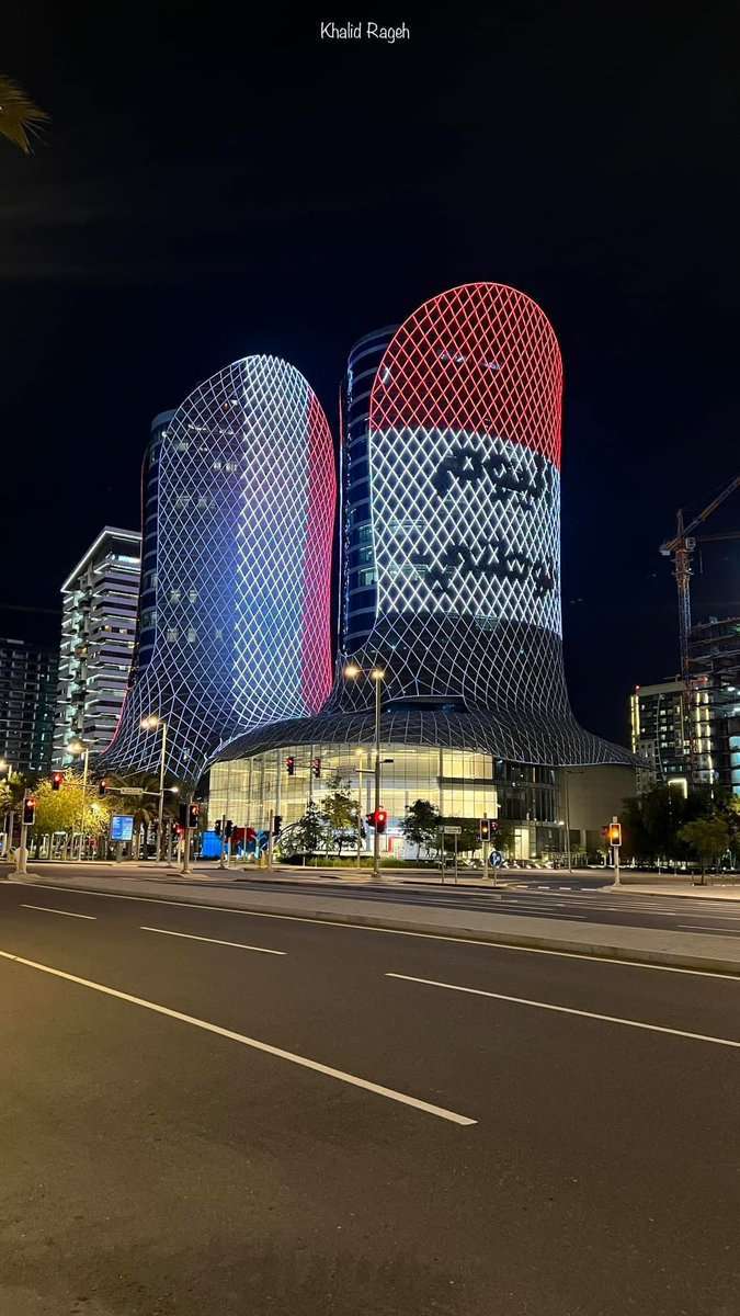 تزينت أبراج لوسيل في دولة قطر بأعلام الجمهورية اليمنية.