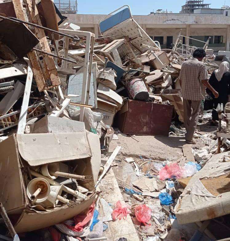 وباشرت اللجنة الفنية المكلفة بتنفيذ مهامها في رفع المعدات التالفة والصالحة في عدد من أقسام مستشفى الصداقة التعليمي العام، إلى فناء المستشفى لأجل حصرها.