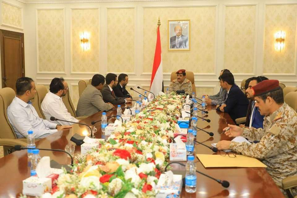 وزير الدفاع يستقبل الصحفيين المحررين من سجون مليشيا الحوثي الإرهابية