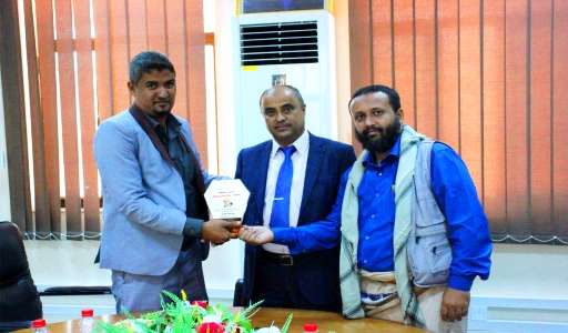 وقدم رئيس النقابة حامد عمر باحويرث درع الوفاء لمعالي وزير المالية سالم صالح بن بريك، في مقر الوزارة بالعاصمة المؤقتة عدن، مؤكدا ان هذا التكريم جاء تقديرا لجهود معالي الوزير.