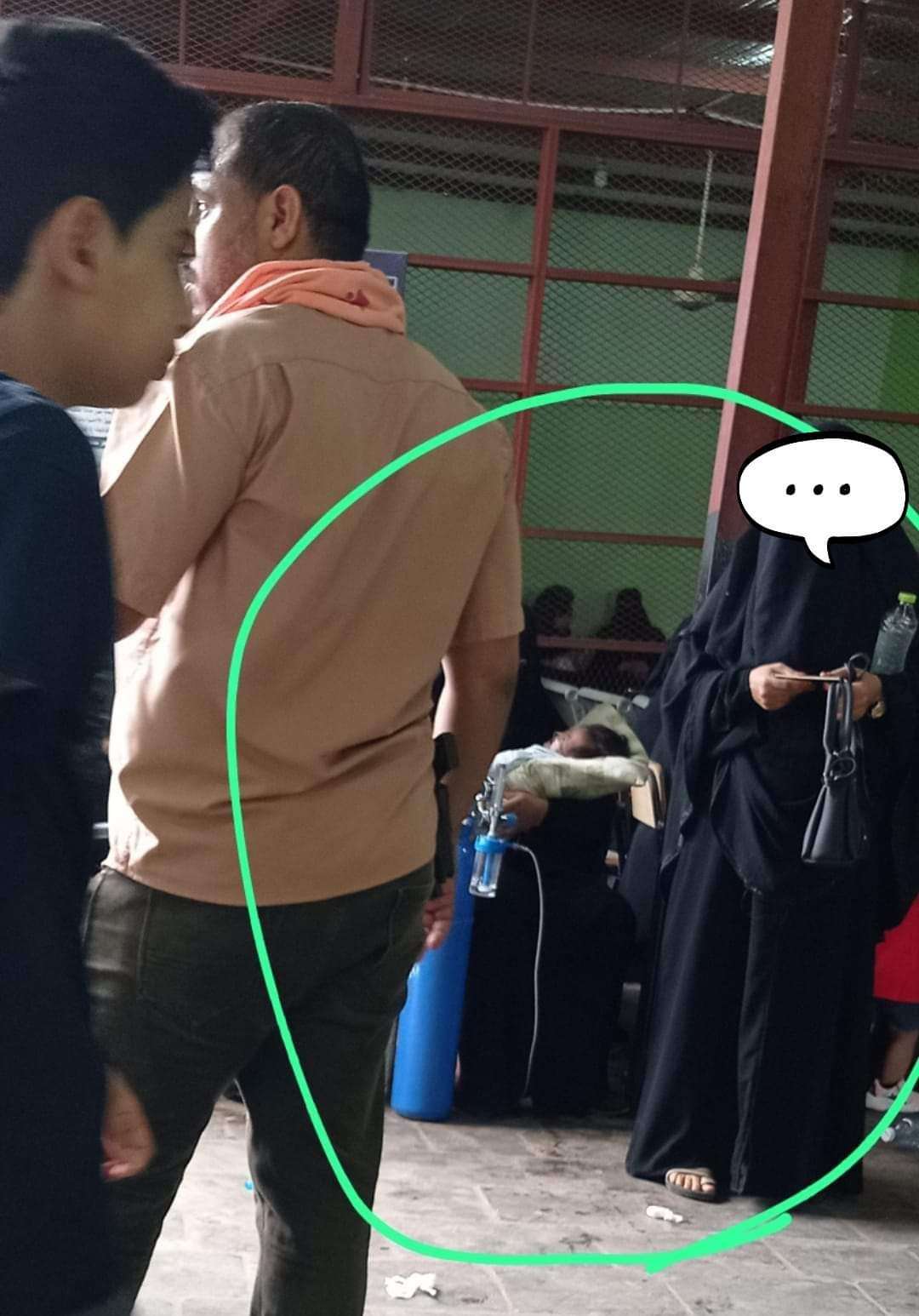 تداول نشطاء صورة صادمة لطفلة تم اخراجها من الانعاش للتصوير في الجوازات بعدن، وتجلس في طابور الانتظار.