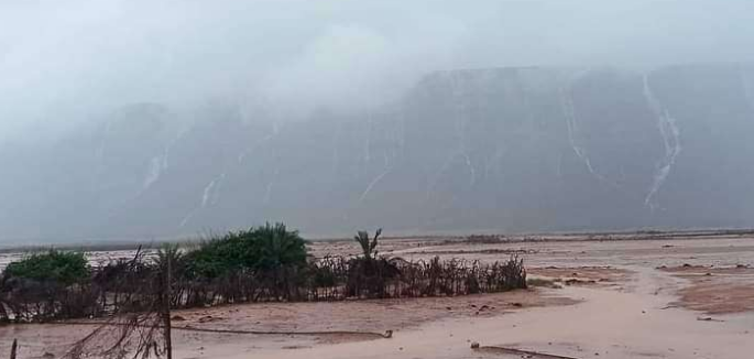 هطول أمطار غزيرة على بعض مناطق سقطرى