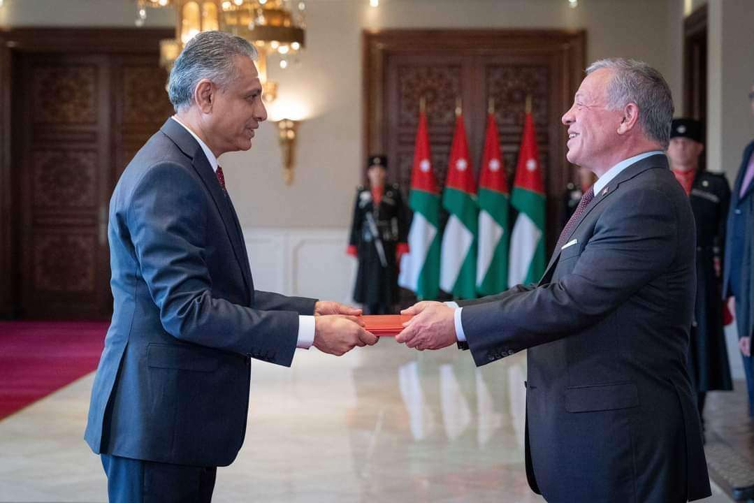 وخلال تقديم أوراق اعتماده نقل السفير تحيات فخامة الرئيس الدكتور رشاد العليمي، رئيس مجلس القيادة الرئاسي لجلالة ملك الأردن وتمنياته له بموفور الصحة والسعادة وللشعب الأردني الشقيق دوام التقدم والازدهار.